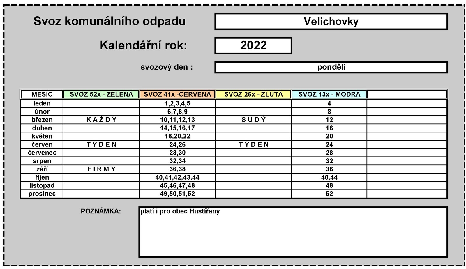 Kalendář svozu Komunálního odpadu pro rok 2022