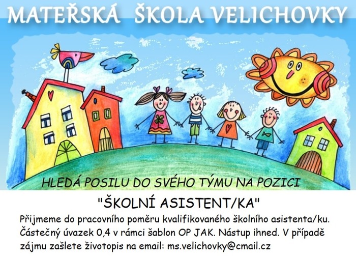 Úvod > Občan > Novinky > MŠ Velichovky hledá do svého týmu asistenta/asistentku