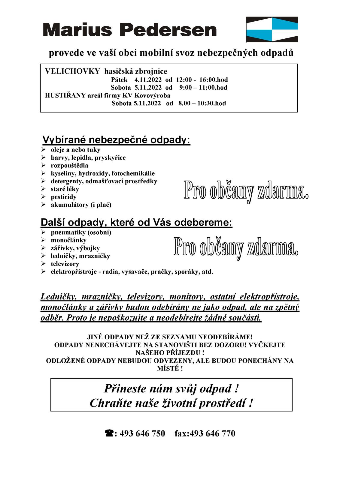Sběr nebezpečného a neskladného odpadu - podzim 2022