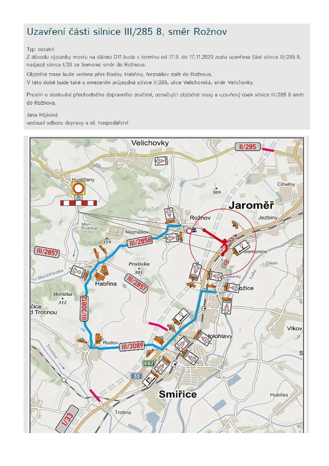 Úvod > Občan > Novinky > Uzavření části silnice III/285 8, směr Rožnov